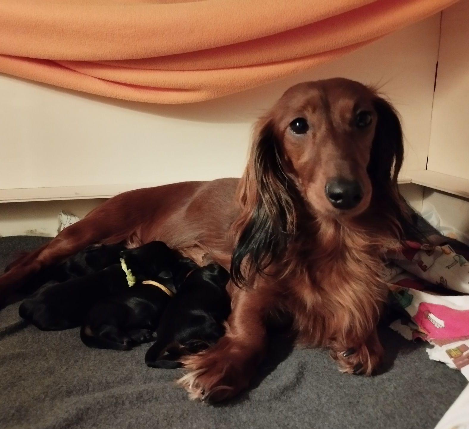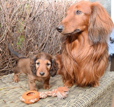 Die Teckel stammen ausschließlich aus durch unsere Gruppenzuchtwarte kontrollierte Zuchtstätten. re